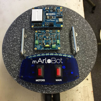 mArlo, my mid-size Arlo robot platform, is complete and running as of today - Memorial Day, May28, 2018. mArlo uses the components of the Parallax Arlo Complete Robot System in more compact configuration - just under 12" in diameter. Many of my parts are from previous versions of the current Arlo.